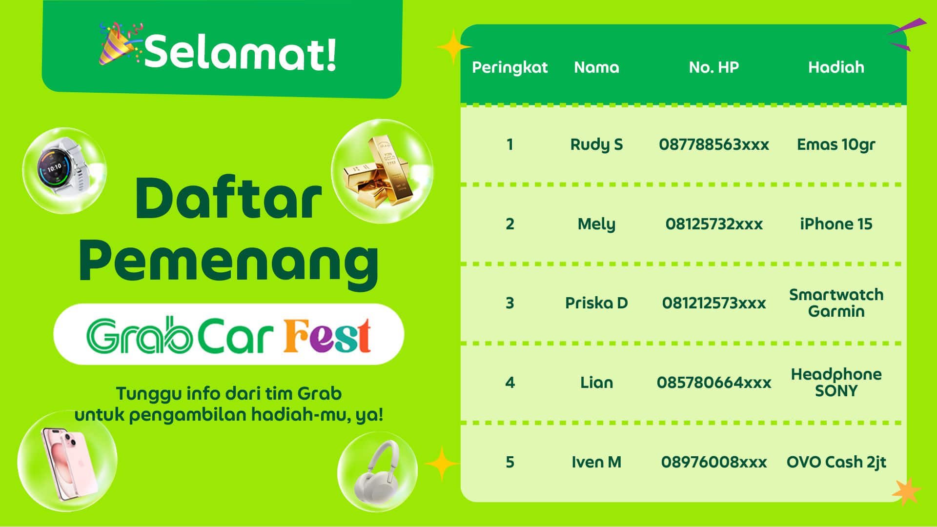 - Pemenang akan diumumkan pada 6 Juni 2025 melalui akun sosial media @GrabID