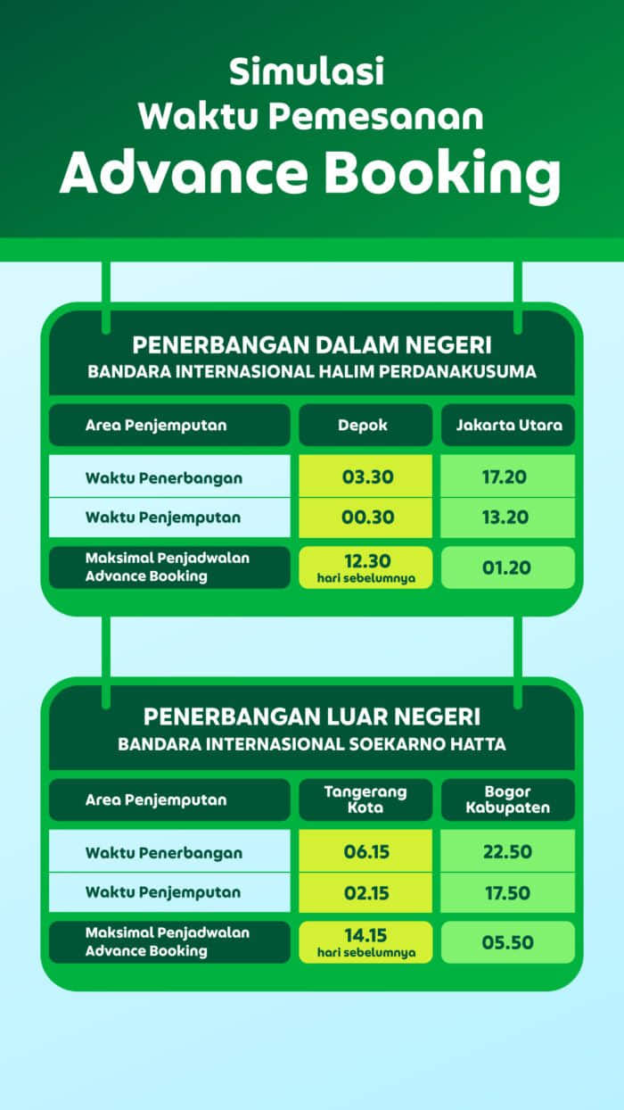 - Kamu harus memesan perjalanan Advance Booking maksimal 12 (dua belas) jam sebelum waktu penjemputan yang dijadwalkan.