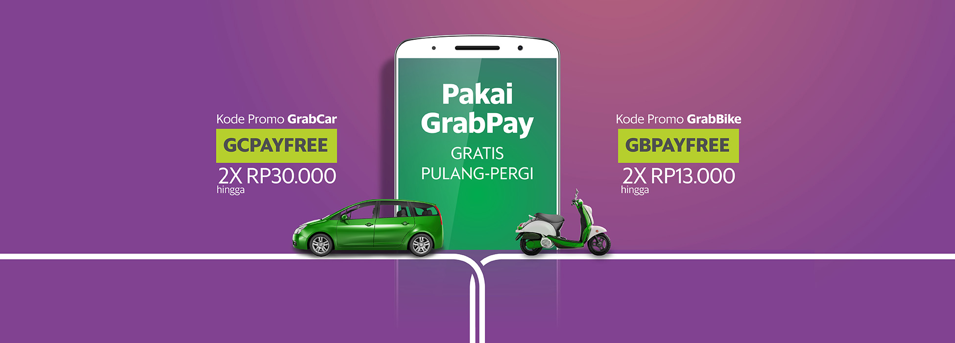 - Promo GrabPay dapat digunakan maksimal 2 (dua) kali untuk layanan GrabBike dengan nilai diskon maksimum Rp13.000 dan maksimal 2 (dua) kali untuk layanan GrabCar dengan nilai diskon maksimum Rp30.000