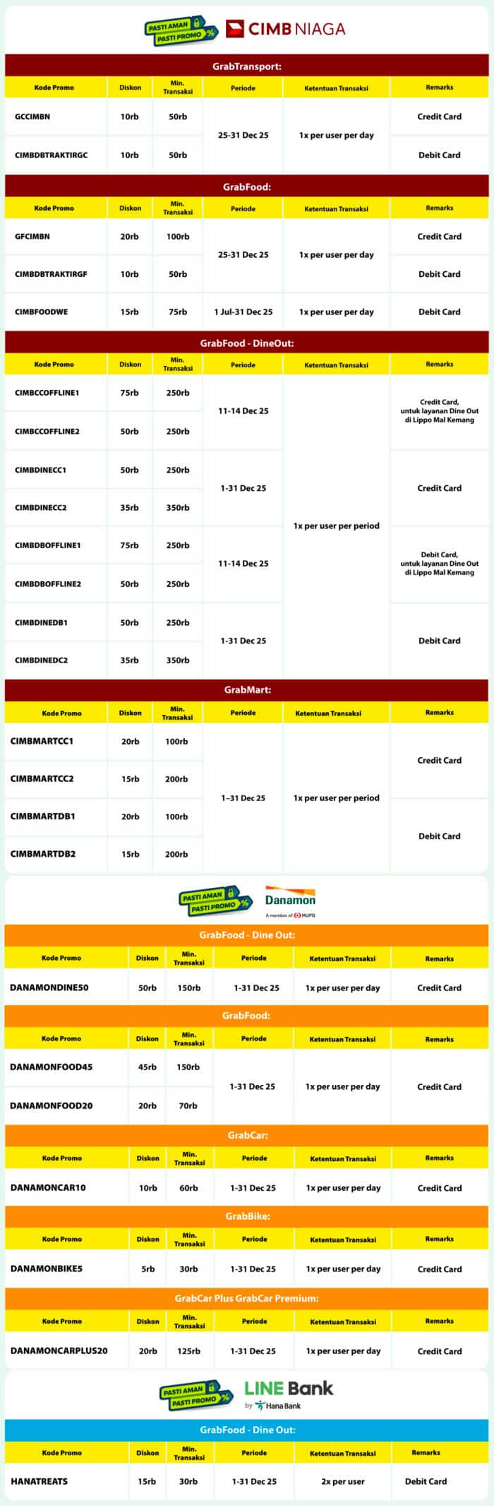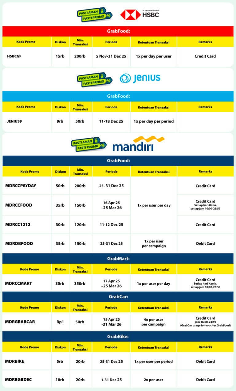 Mulai dari GrabFood, GrabBike, GrabCar, hingga GrabMart, cukup dengan melakukan pembayaran menggunakan kartu Debit/Kredit 💚
