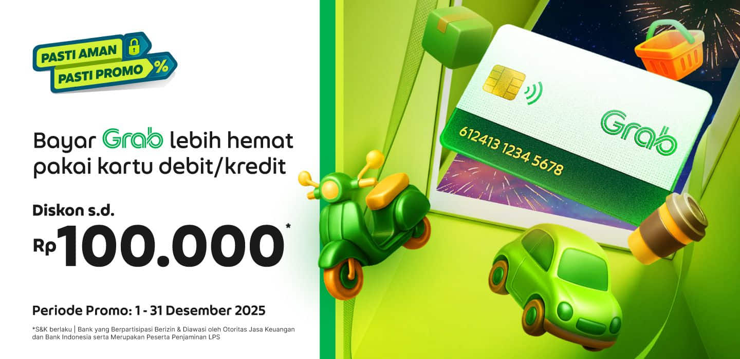 Pake Grab lebih hemat! Bayar pake kartu Kredit/Debit diskon s.d. Rp100.000