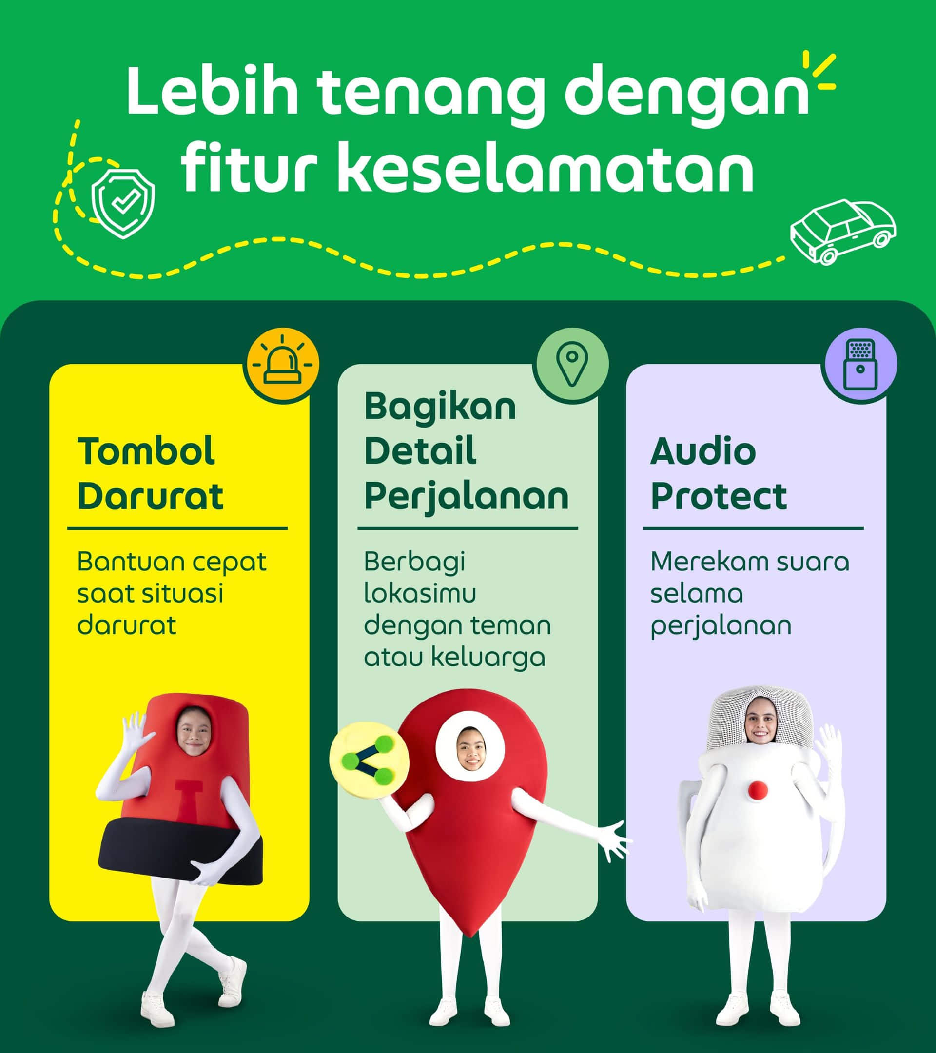 Yuk jadi bagian dari perjalanan keluarga kamu setiap kali mereka memakai Grab! Jadi kamu bisa lebih tenang dan bisa memantau perjalanan keluarga kamu saat bepergian dengan Grab.