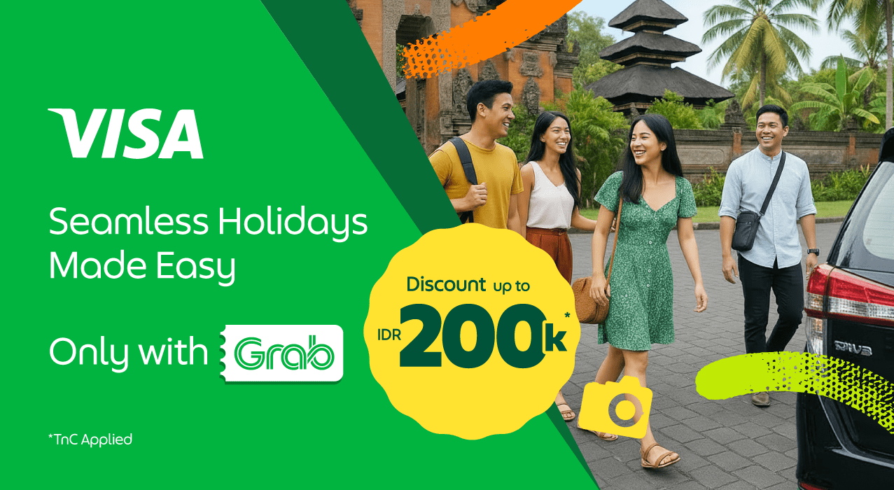 🚗 GrabCar Airport (include to/from Airport) if you are new Visa user in Grab – Enjoy 4x discounts up to Rp50.000 each.