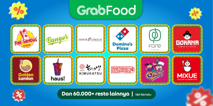 - Diskon s.d. 61% (55% min. belanja 69rb maksimal potongan 40rb + Diskon Ongkir s.d 10rb) spesial member GrabUnlimited berlaku di kota Bandung, Makassar, Medan.