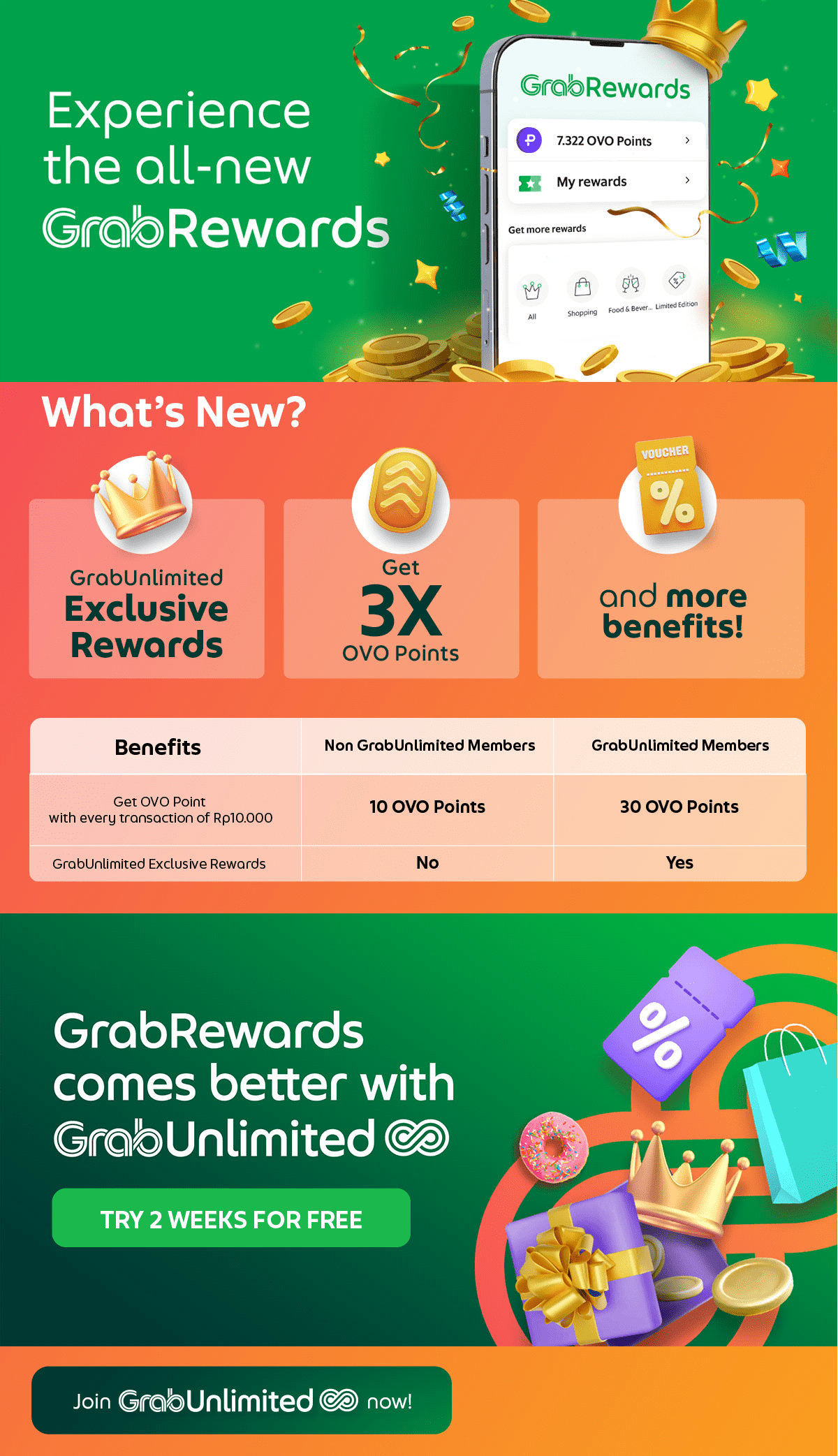 *Grab reserves the right to change the reward offers and points multiplier for payment via cash, credit/debit cards or OVO without prior notice.