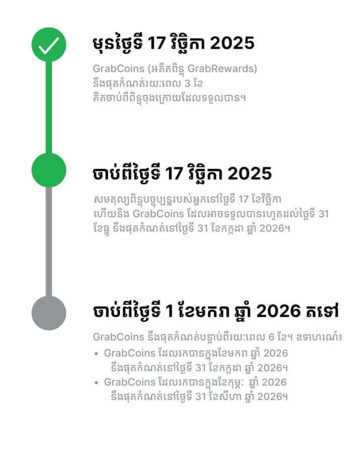 Minimum balance to redeem: 17 GrabCoins ≈ KHR 100