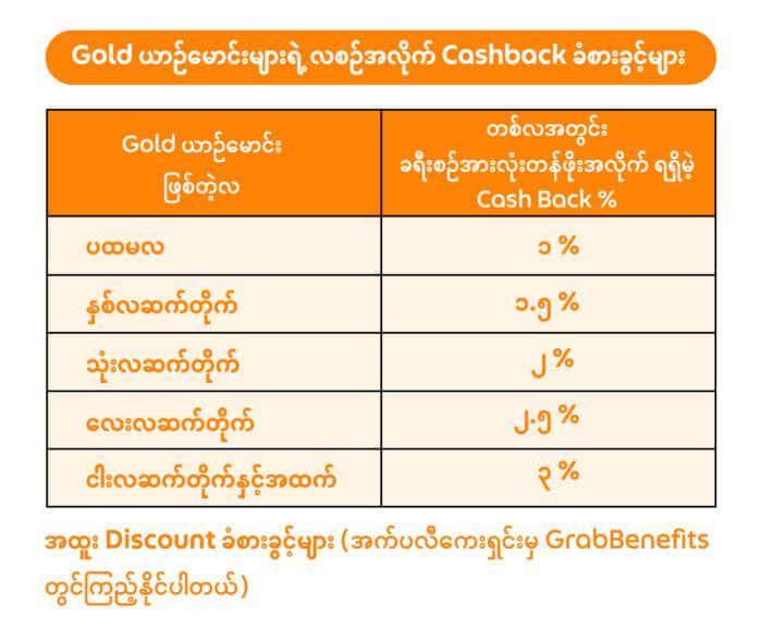 အထက်ပါ ခံစားခွင့်တွေကို အက်ပလီကေးရှင်းရဲ့ Driver Benefit ထဲမှာ ဝင်ရောက်ကြည့်ရှုနိုင်ပါတယ်။