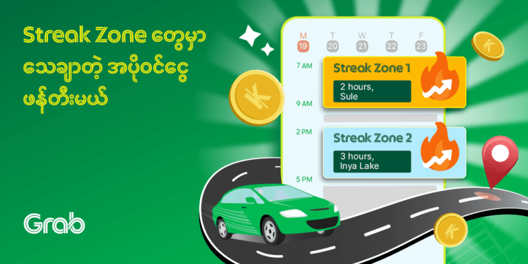 …📢 လမ်းပေါ်မှာ အချိန်နည်းနည်းနဲ့ သေချာတဲ့အပိုဝင်ငွေ ဖန်တီးလိုတဲ့ မိတ်ဖက်တွေအတွက် မိမိစိတ်ကြိုက် အချိန်၊ နေရာ ရွေးပြီး မောင်းနှင်နိုင်မယ့် Streak Zone အစီအစဉ်မှာ ပါဝင်နိုင်ပါပြီ။