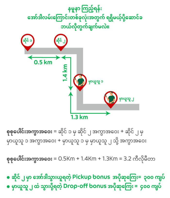 3) တစ်ဆိုင်ထက် ပိုတဲ့ အော်ဒါလမ်းကြောင်းတွေအတွက် အထူး အပိုဆုကြေးတွေ ရှိမှာ ဖြစ်ပါတယ်။