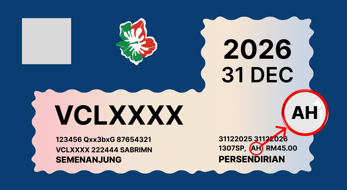 5. Periksa jika ‘AH’ dinyatakan pada cukai jalan anda, seperti ditunjukkan pada gambar di bawah.