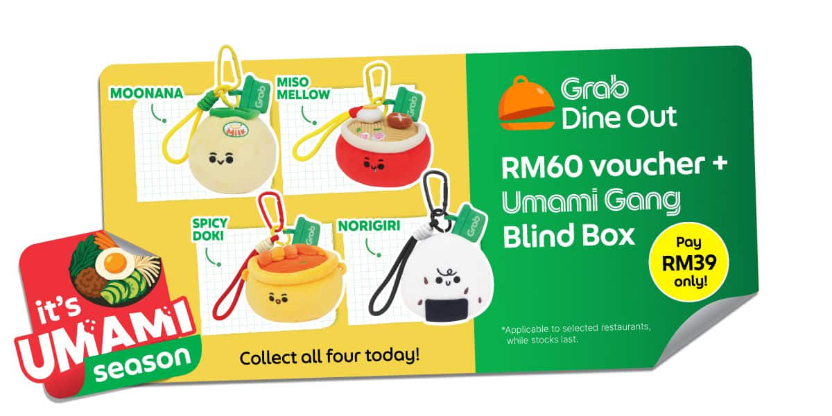 Get a RM60 voucher + 1x Umami Gang Blind Box for only RM39 at selected restaurants with Grab Dine Out.