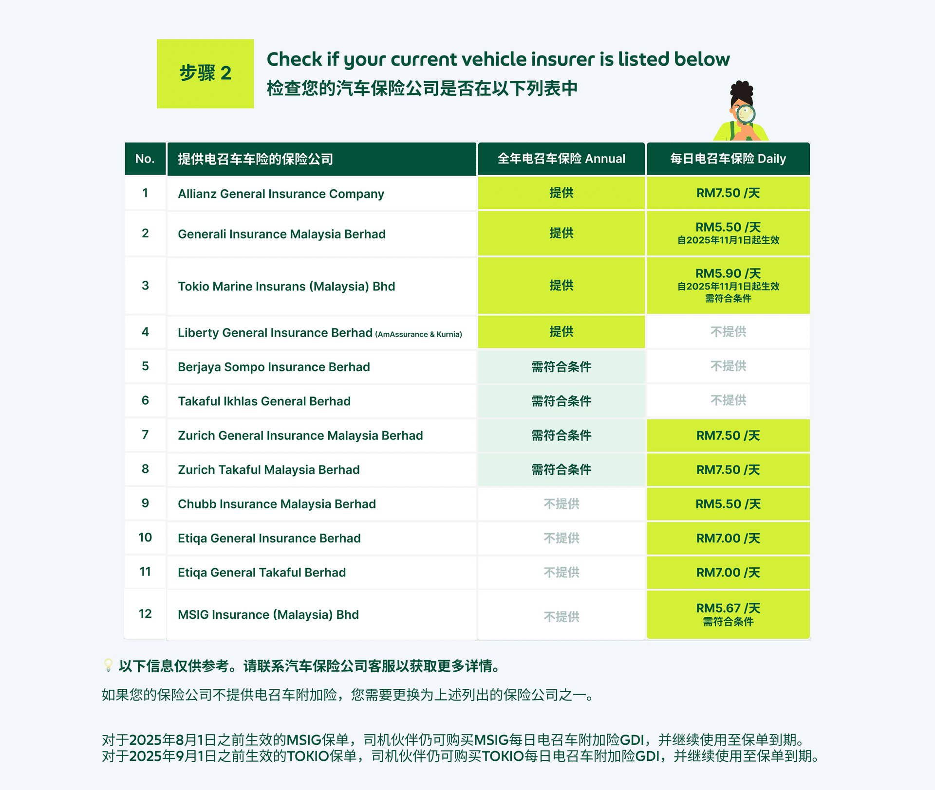 💡Grab是唯一一家提供每日电召车保险Grab Daily Insurance的电召车平台,为司机提供更灵活的选择。更多信息请参考这里