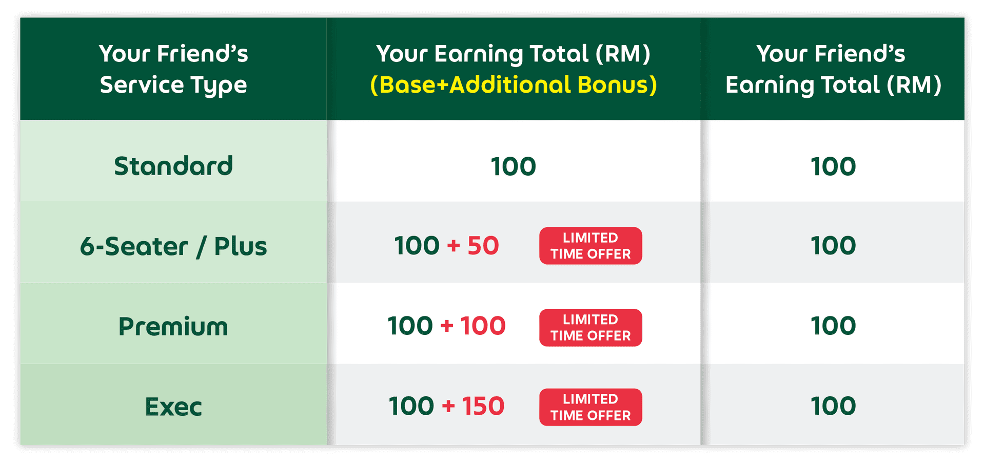 Regardless of your own service type, now you can earn up to RM250 including additional bonus by referring your friends to the following service types.