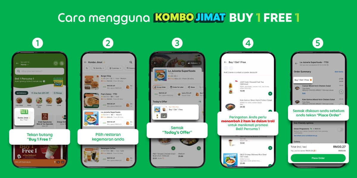 Tip Pro: Anda perlu tambah item kedua sekali ke pesanan untuk nikmati promosi Beli 1 Percuma 1.