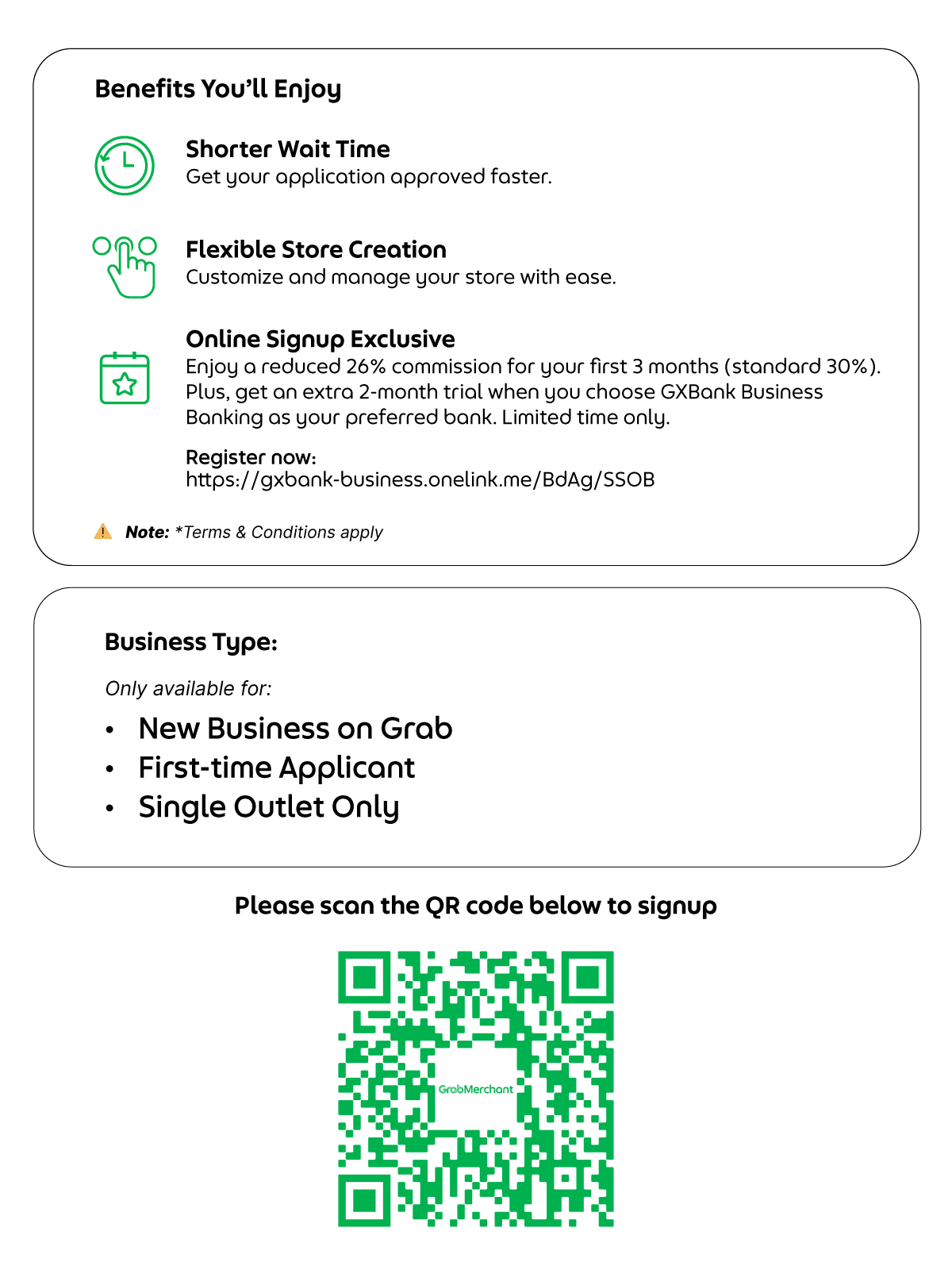 For multiple outlets application or should you require more information, kindly submit your enquiry via the form below: