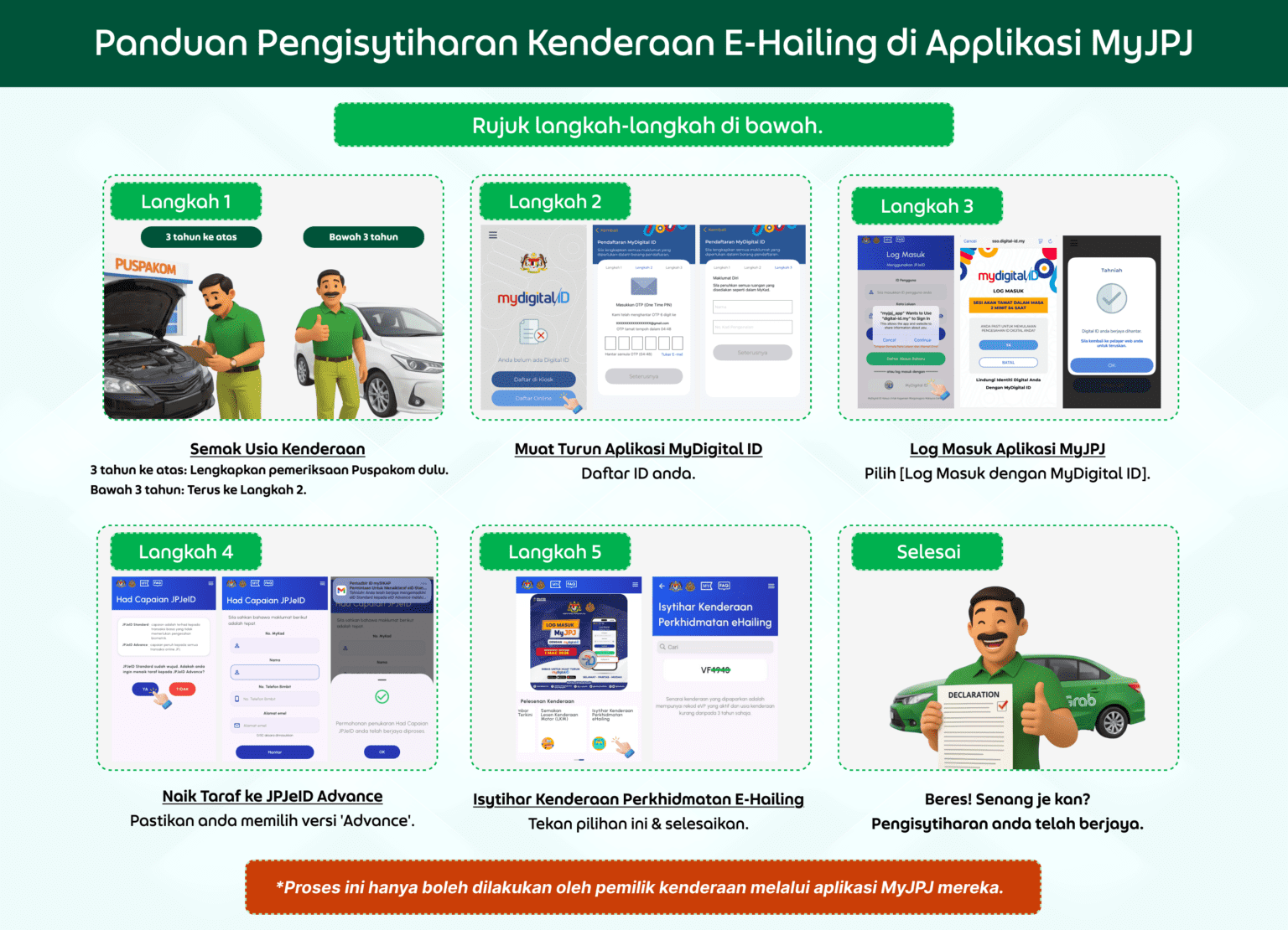 Proses ini adalah percuma dan wajib untuk rakan-pemandu yang berdaftar di Malaysia.