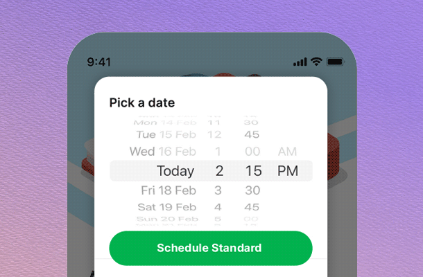 Pick the time and date, and tap ‘Schedule Standard’.