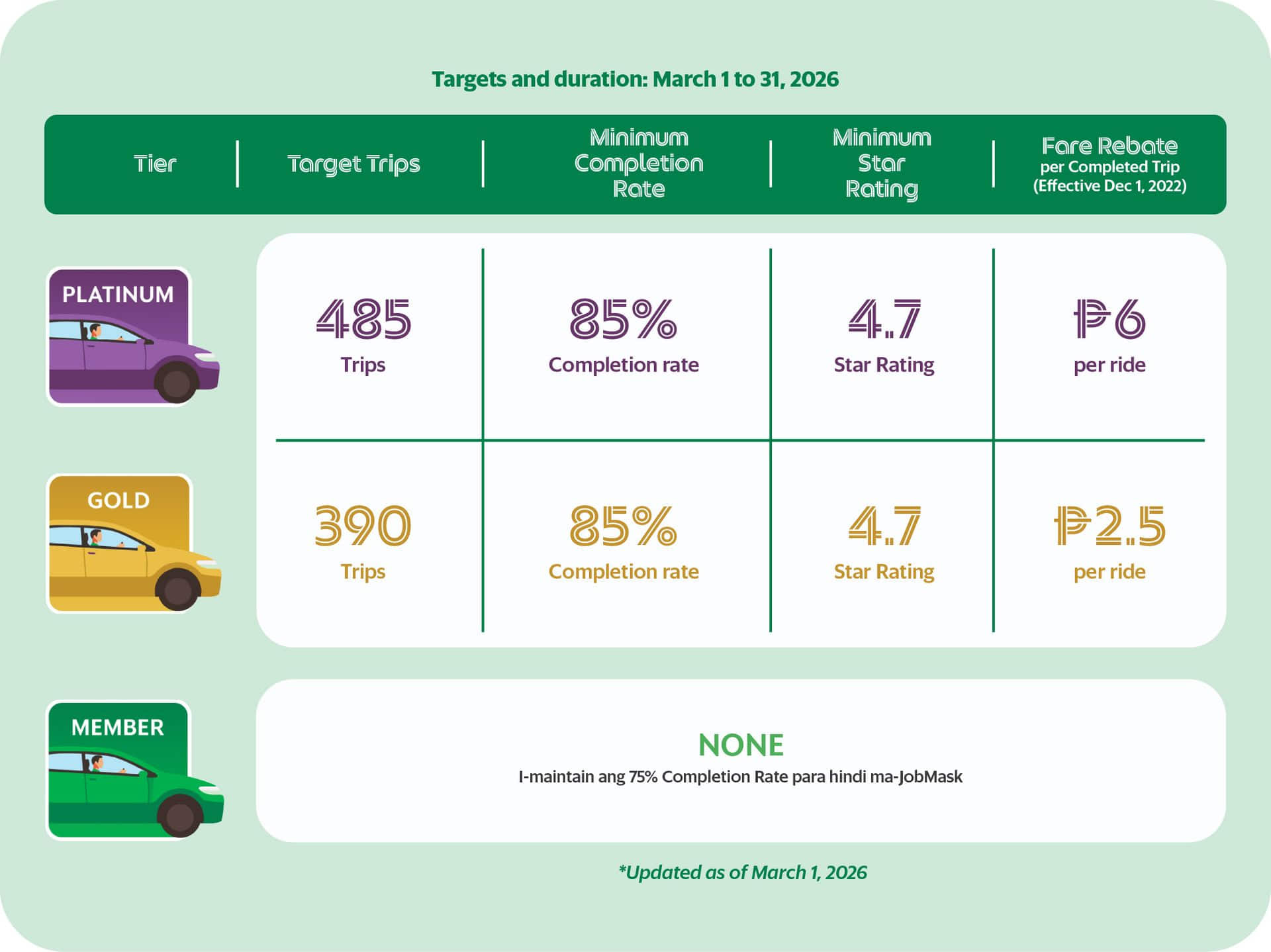 Abangan ang ating Monthly Tier and Target Rides Announcement sa umpisa ng kada buwan