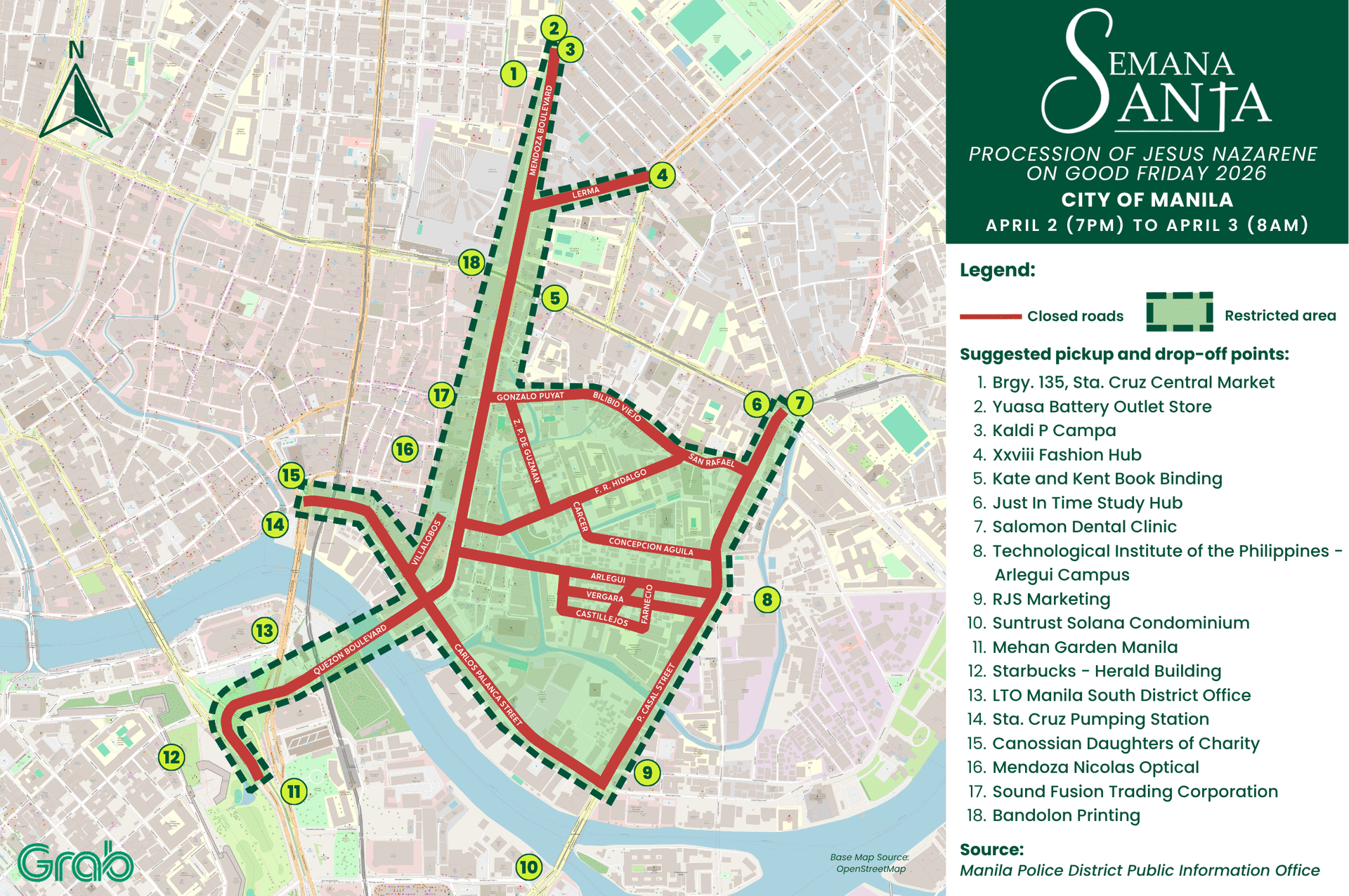 May plano ka na ba sa paparating na Holy Week? Kung ikaw ay babiyahe, narito ang listahan ng mga kalsada, stores at Grab Driver Centers na magsasara ngayong Mahal na Araw: