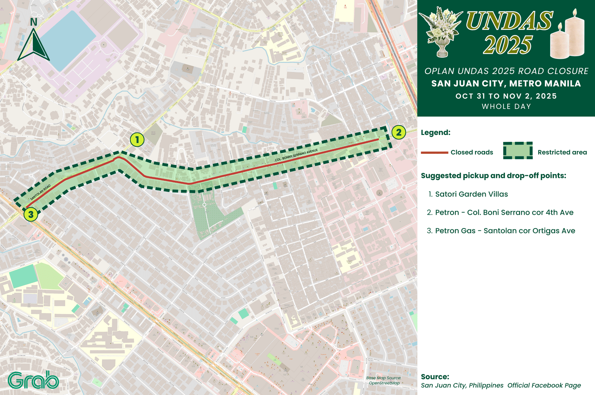 Oplan Undas 2025, San Juan City – Closure (Oct 31 – Nov 2, Whole Day)