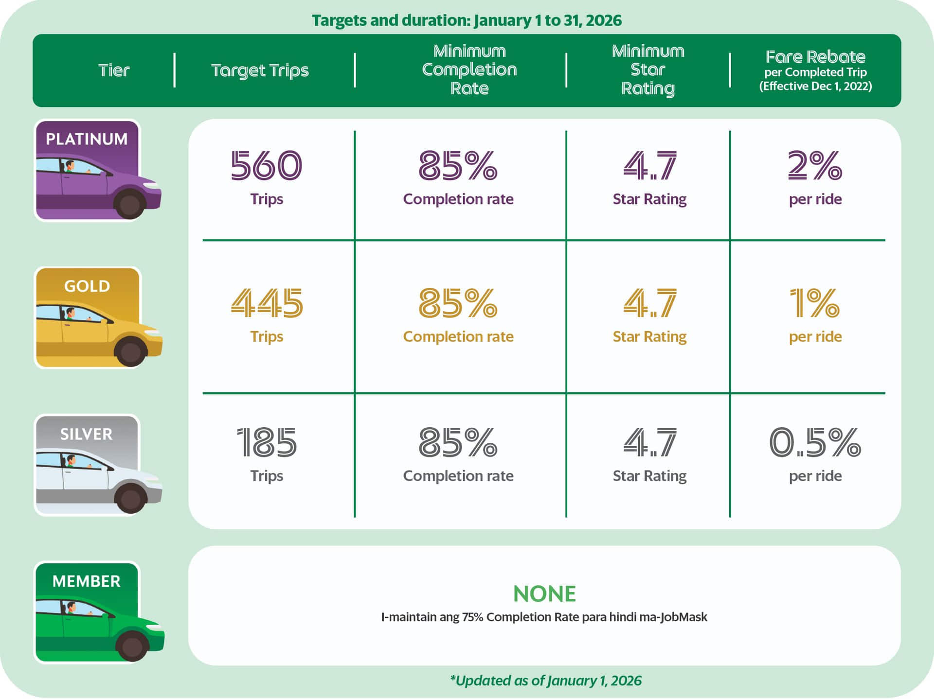 Abangan ang ating Monthly Tier and Target Rides Announcement sa umpisa ng bawat buwan