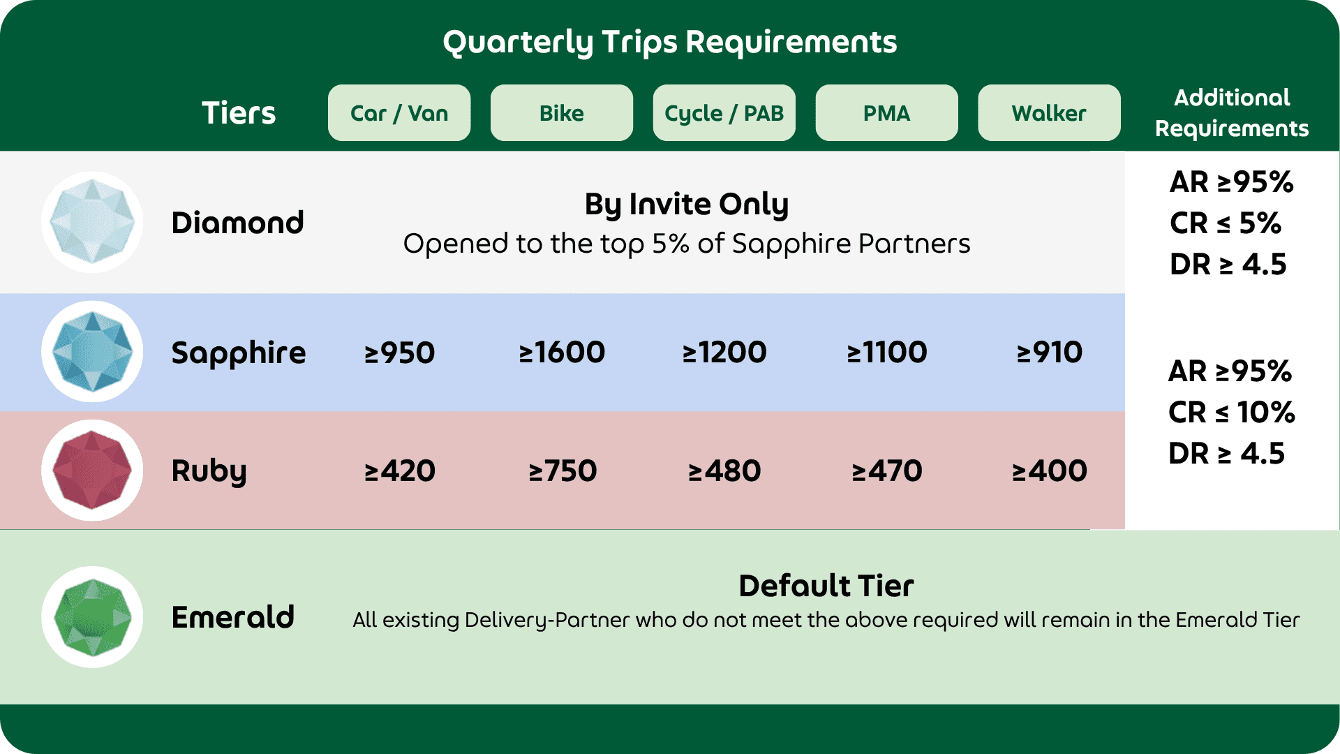 All new joiners will start from Emerald tier first. They will be able to progress to higher tiers to unlock more benefits if they manage to complete the minimum trip targets for the respective tier*.