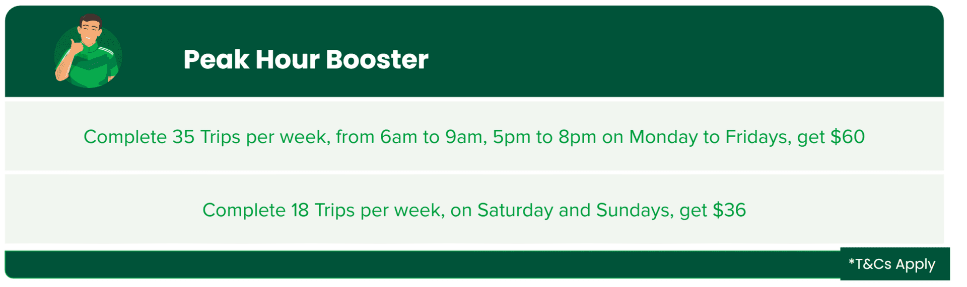 5. All driver-partners have to maintain an Driver Rating of 4.7, Acceptance rate of above 90% and a Cancellation rate of below 10%. Failure to meet these requirements will result in bonus ineligibility.