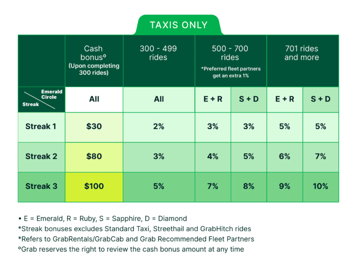 All driver-partners that have been awarded Sapphire Tier during the interim period will only be eligible for Sapphire tier rebates from Grab Streak Bonus (GSB) 2.0 in the next month after the month of promotion.
