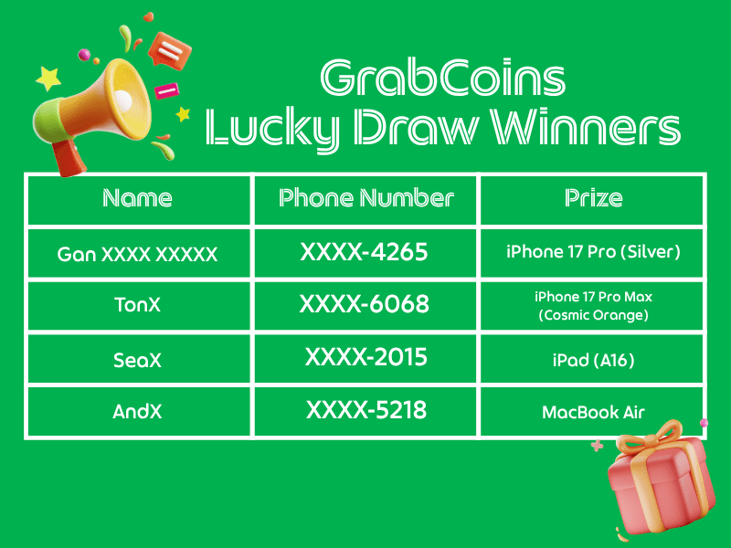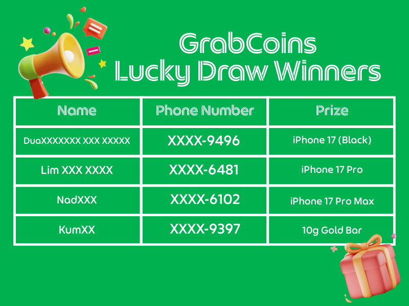 Congratulations to all GrabCoins Lucky Draw winners! 🎉