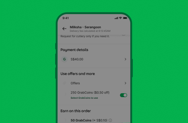 Offset your orders instantly with as little as 50 GrabCoins to enjoy savings on GrabFood and GrabMart – and soon, on Grab rides.