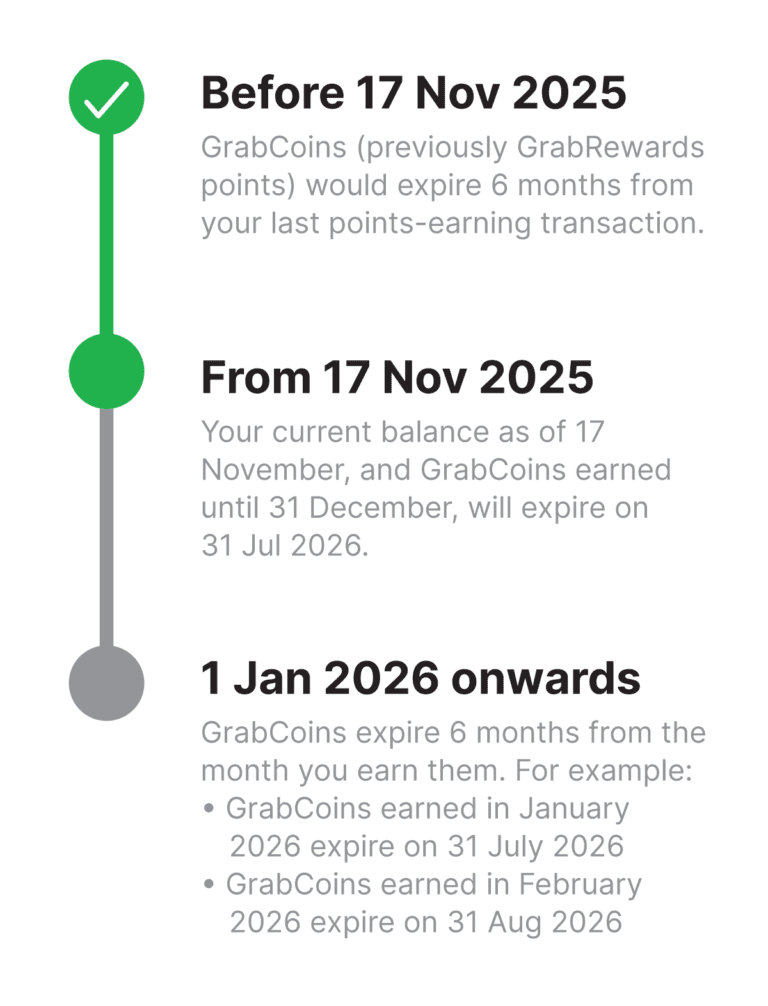 Rest assured, your points balance will carry over exactly as is (1 point = 1 GrabCoin).