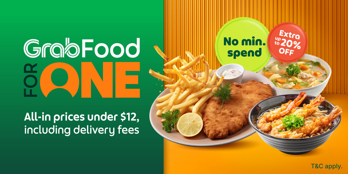 Not when you can get GrabFood for One, with all-in prices under $12—including delivery fees, with no min. spend required!