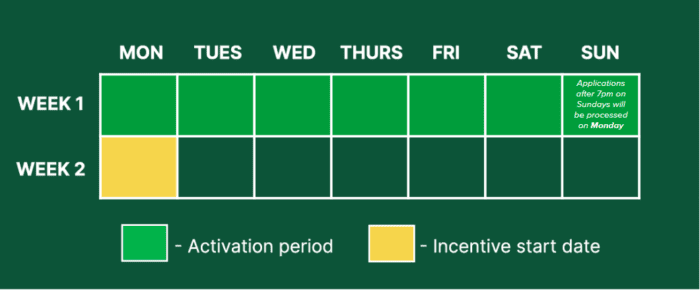 It would start on the upcoming Monday upon completing the training and receiving an SMS confirmation. Check your in-app incentive for the exact start date.