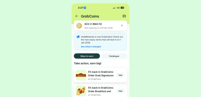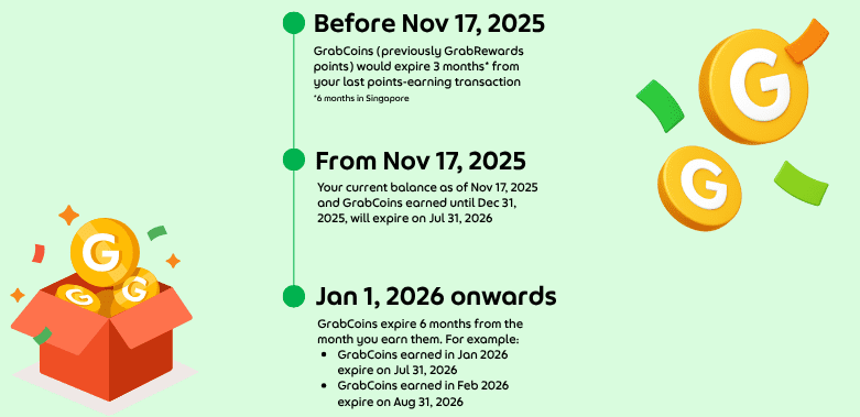 From January 2026, users are encouraged to redeem the GrabCoins they have earned within six months before they expire. Here are some key changes users need to take note of during this transition phase: