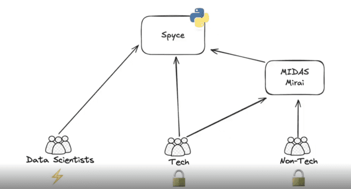 Non-technical users don’t have to install or write any code to work with Spyce. They can just send a request to forecast a given metric to an internal service and receive a result. This service will take care of all the work related to model selection and data preparation. The Spyce package can also easily integrate with AI agents (e.g. chat bots) that teams can then use to generate forecasts on their own.