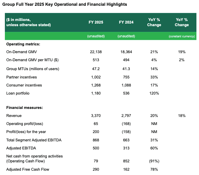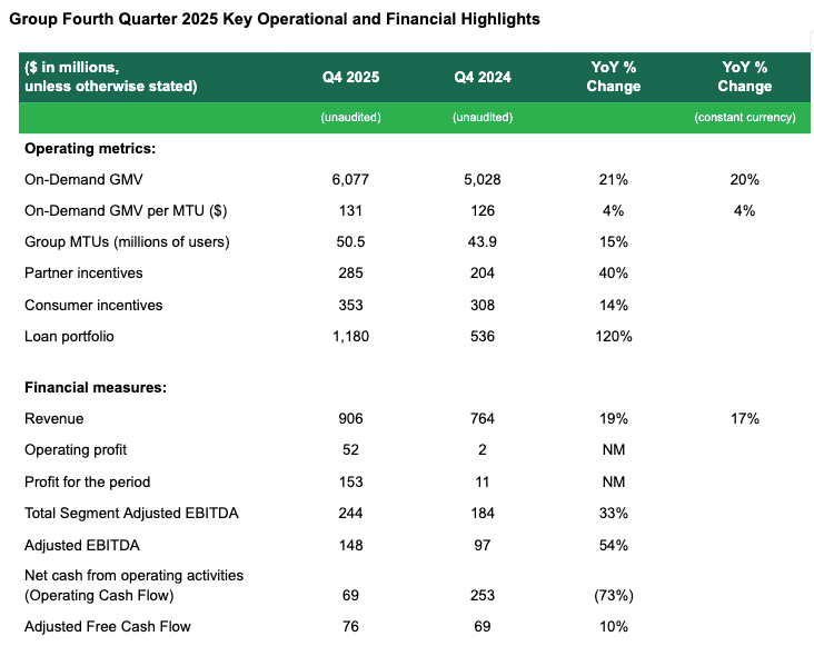 Grab Reports Fourth Quarter and 2025 Results with First Full Year Net Profit