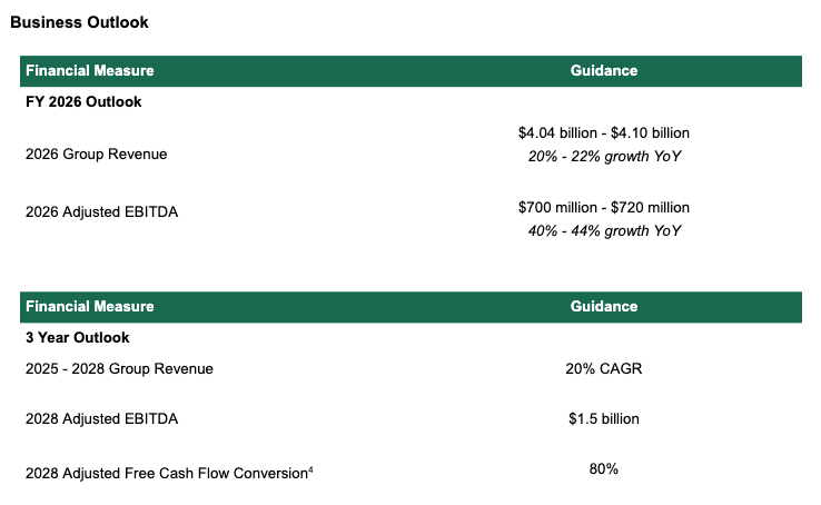 - Revenue grew 19% YoY, or 17% on a constant currency basis to $906 million in the fourth quarter of 2025, driven by growth across our On-Demand and Financial Services segments.