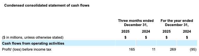 - Adjusted Free Cash Flow was positive for the full year at $290 million in 2025, compared to $162 million in 2024, mainly driven by improvements in profit/(loss) before income tax.