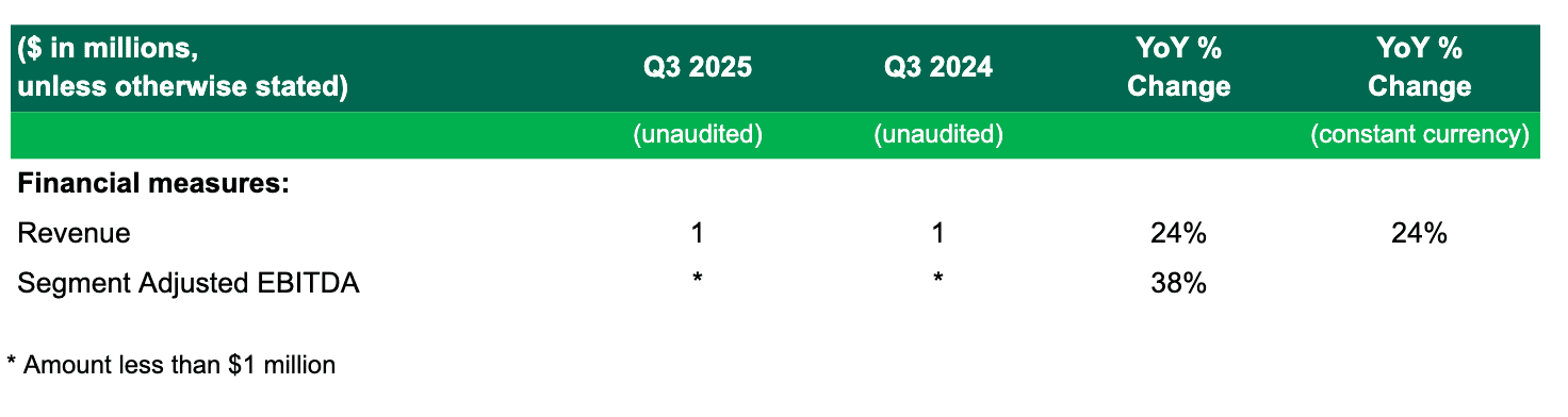 - Revenue for Others was $1 million in the third quarter of 2025.