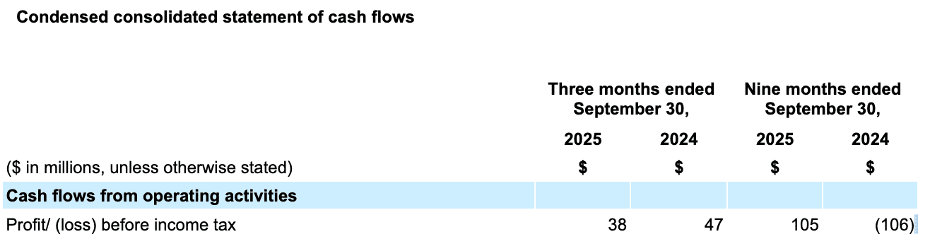 - Profit for the period was $17 million, an improvement of $2 million YoY, primarily due to positive operating profit and lower income tax expenses incurred, partially offset by lower net finance income for the period.