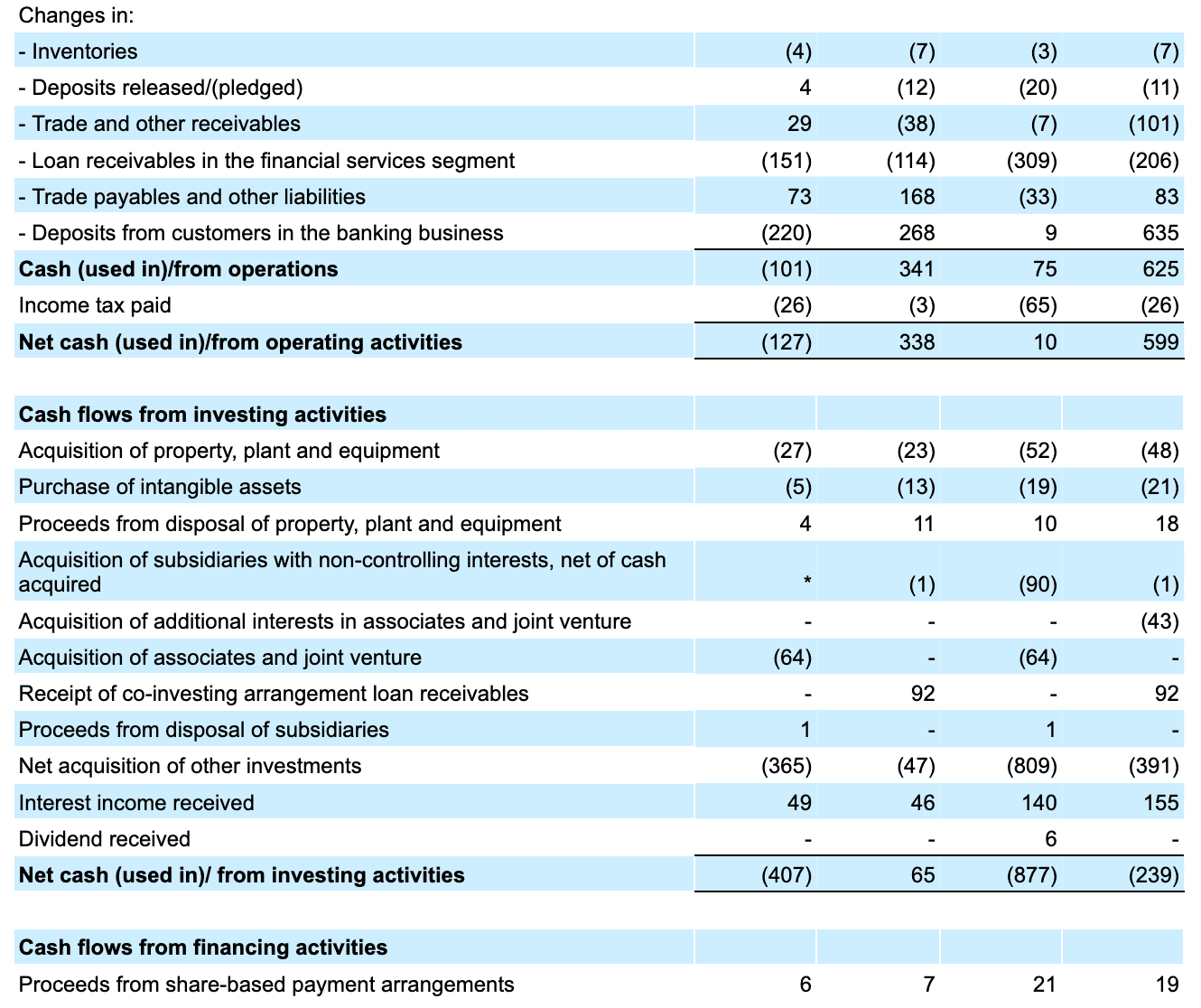 - Adjusted Free Cash Flow is defined as net cash flows from operating activities less capital expenditures (including assets acquired under lease arrangements), plus proceeds from disposal of property, plant and equipment, and excluding changes in working capital related to loans and advances to customers, and deposits from the digital banking business.