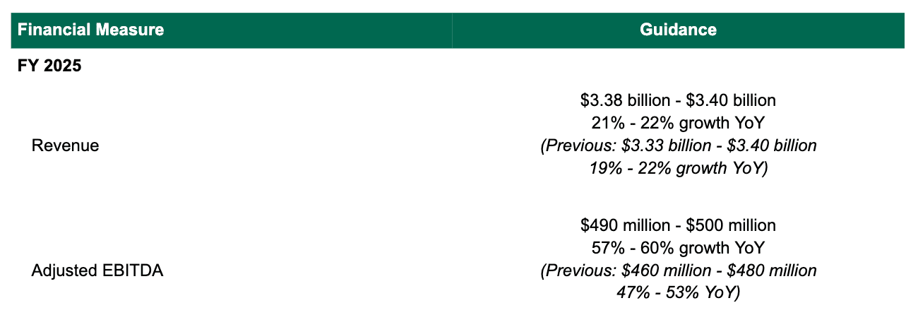 - Revenue grew 22% YoY, or 17% on a constant currency basis to $873 million in the third quarter of 2025, driven by growth across our On-Demand and Financial Services segments.