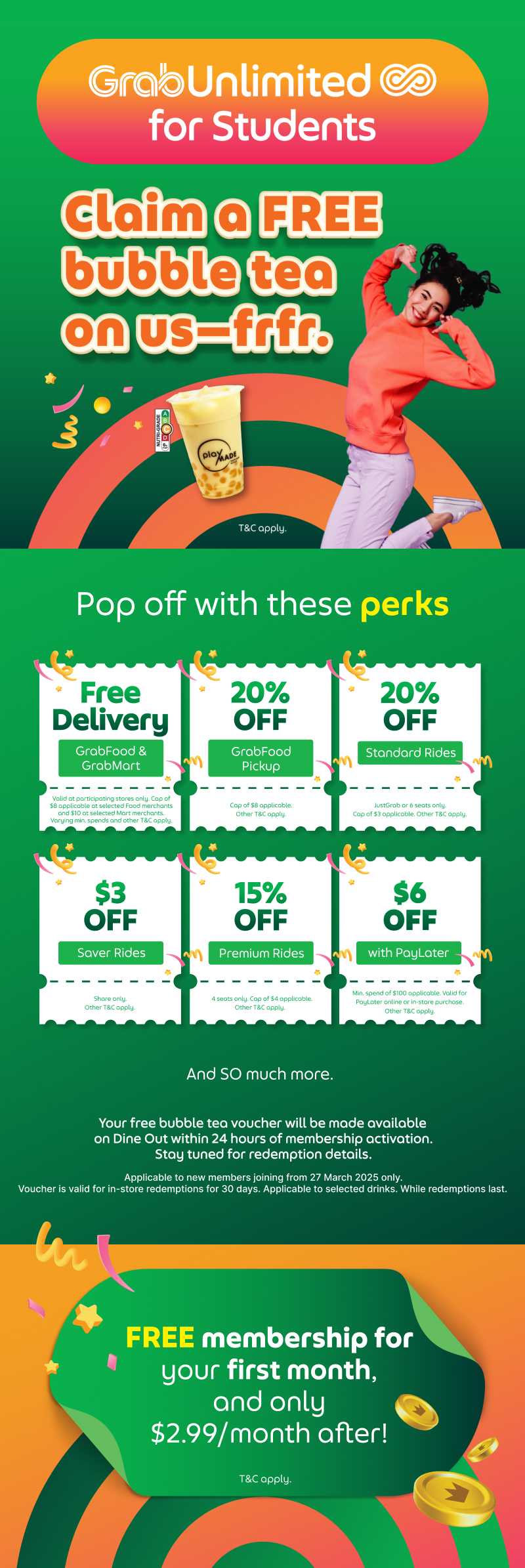 Eligible students will receive an email on your Grab registered email address and a push notification on the Grab app to remind you to activate your free trial, keep a lookout!