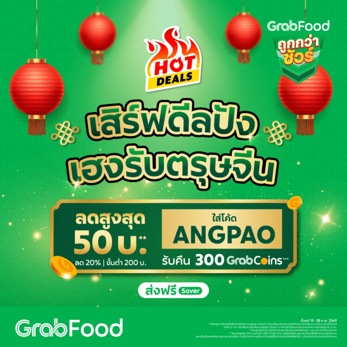 ***ส่วนลดสูงสุด 20% และรับคืน 300 GrabCoins เมื่อใส่รหัสส่วนลดและเมื่อคำสั่งซื้อตรงตามข้อกำหนดและเงื่อนไขของรหัสส่วนลดและบริการโดย GrabCoins จะถูกโอนเข้าบัญชีผู้ใช้บริการเมื่อคำสั่งซื้อสำเร็จ | เงื่อนไขเป็นไปตามที่บริษัทกำหนด