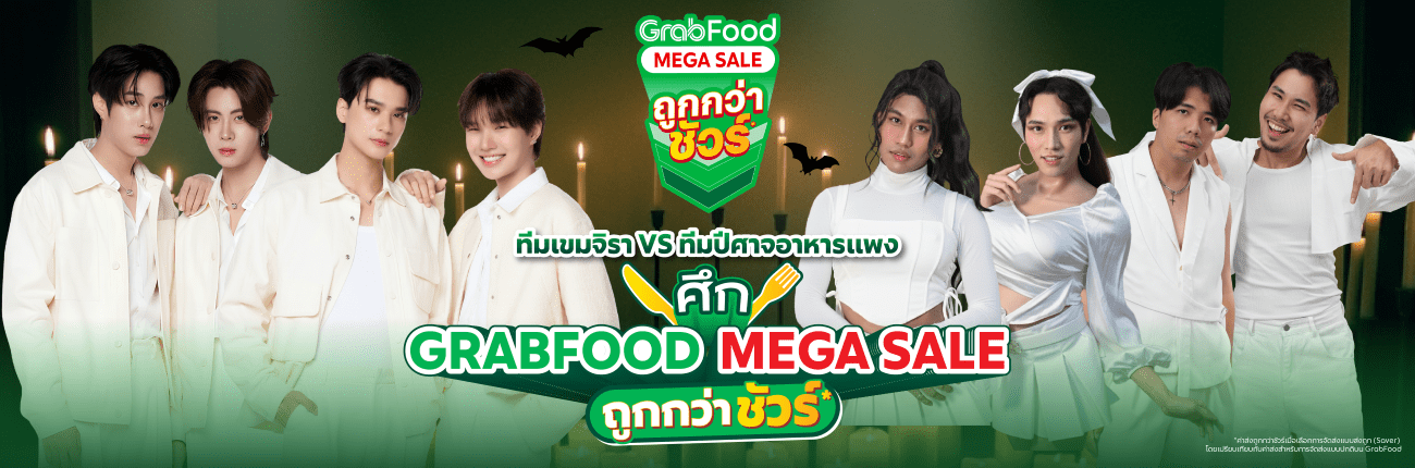 - รับสิทธิ์ร่วมกิจกรรมศึก GrabFood Mega Sale ถูกกว่าชัวร์* กับศิลปิน ตามวันหรือเวลาหรือสถานที่เป็นไปตามที่บริษัทเห็นสมควร