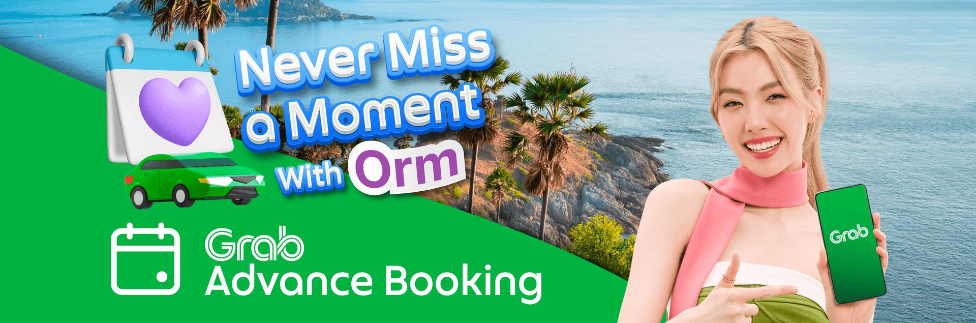 ออมชวนทุกคนมาเปิดประสบการณ์ใหม่กับ Grab Advance Booking บริการจองรถล่วงหน้า สะดวก อุ่นใจ มารับตรงเวลา ด้วยการร่วมภารกิจ Advance Booking Rides Challenge x Orm Kornnaphat เตรียมพบกับประสบการณ์สุดพิเศษกับออมและรางวัลอื่นๆอีกมากมาย