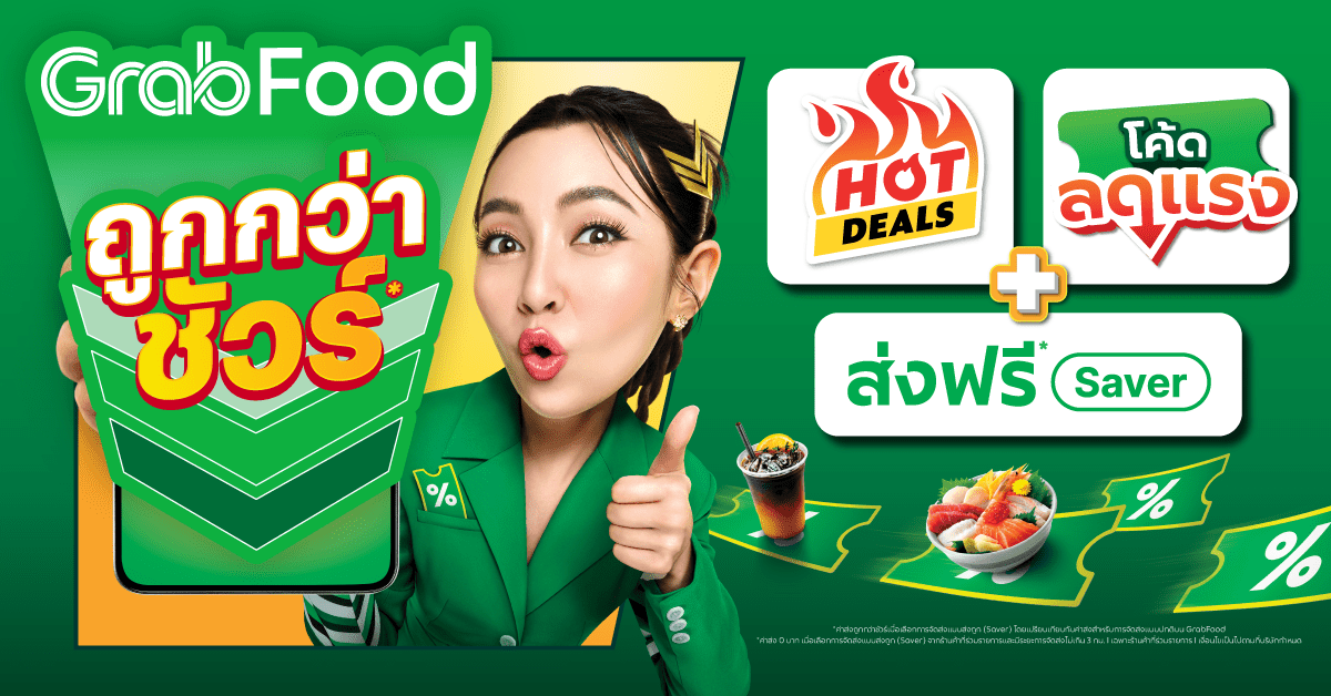 - เฉพาะร้านค้าที่ร่วมรายการ GrabFood ถูกกว่าชัวร์ เท่านั้น