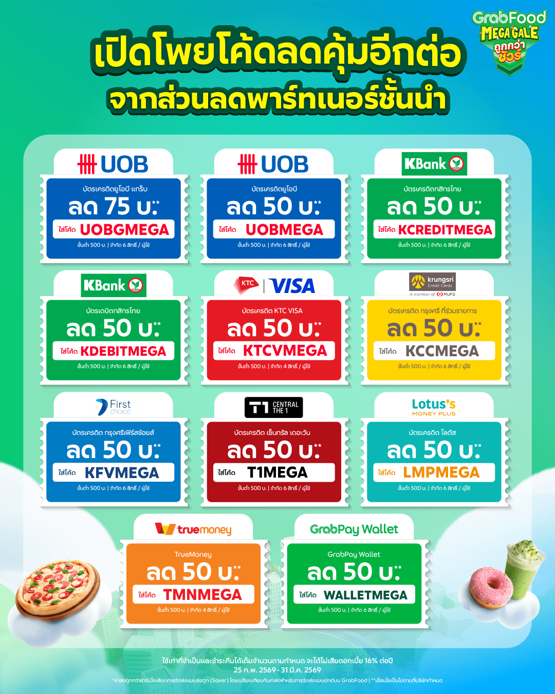 3. รหัสส่วนลดสามารถใช้ได้ตั้งแต่วันที่ 25 กุมภาพันธ์ 2569 ถึง 31 มีนาคม 2569 หรือจนกว่าสิทธิ์จะหมด