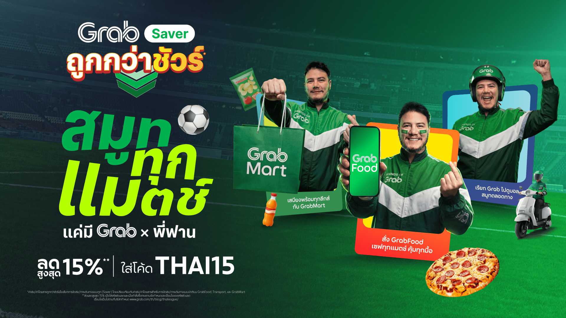 - รหัสส่วนลด “THAI15” ลด 15% เมื่อสั่ง GrabMart มูลค่าคำสั่งซื้อขั้นต่ำ 250 บาท ส่วนลดสูงสุด 60 บาท