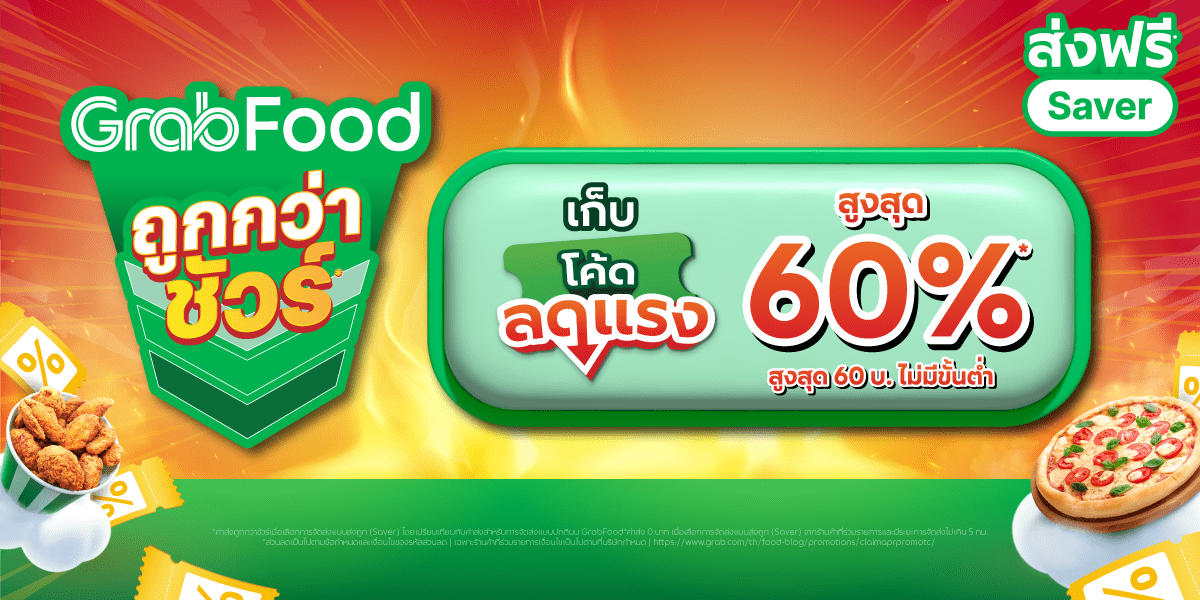 - เฉพาะร้านค้าที่ร่วมรายการ GrabFood ถูกกว่าชัวร์ เท่านั้น